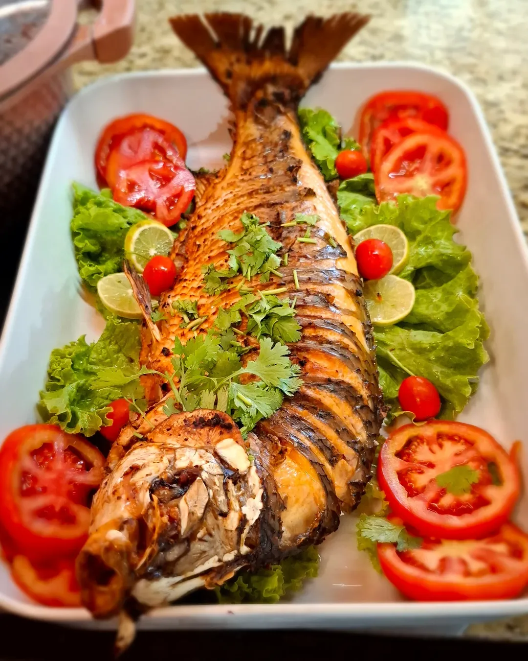 Peixe assado da casa